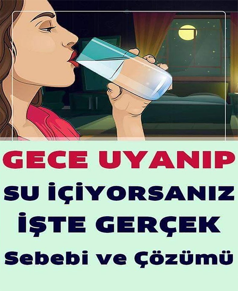 Geceleri susuzluktan uykunuz mu bölünüyor? Özellikle yaz aylarında vücudumuz çok su kaybettiği için daha sık su içmemiz gerekir. Bazı günler yatmadan önce devasa bir bardak su içseniz bile gece sanki günlerdir su içmemişsiniz benzer biçimde uyanırsınız. Peki bunun sebebi ne? Gelin hep birlikte inceleyelim Geceleyin tam da uykunuzun en tatlı saatlerinde susuzluktan uyanmak gerçekten çok can sıkar. Bu durum hidrasyon eksikliğinin bir göstergesidir.Gün içinde zaman vakit su içmeyi unuttuğumuz oluyor. Günde minimum 8 bardak su içmelisiniz. Hakikaten günde 8 bardak su içiyor musunuz? Geceleri uykunuzun bölünmesini istemiyorsanız önce bu probleminin cevabını “evet” olarak vermelisiniz. Ayrıntılar diğer sayfadadır… Diğer sayfaya geçmek için gorsele do’kunun…