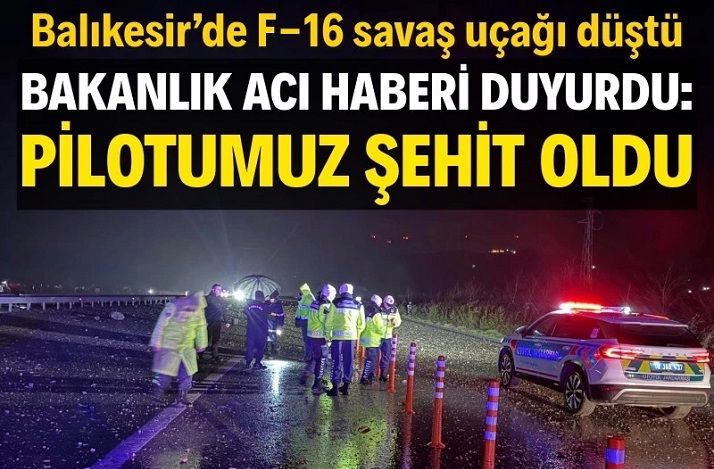 9’uncu Ana Jet Üs Komutanlığı-Balıkesir’den kalkış yapan bir F-16 uçağımız ile 00.56’dan itibaren telsiz irtibatı ve iz bilgisi kesilmiştir. Derhâl başlatılan arama kurtarma çalışmaları sonucunda uçağımızın kaza kırıma uğradığı tespit edilmiş ve uçağımızın enkazına ulaşılmıştır. Pilotumuz şehit olmuştur. Kazanın nedeni kaza kırım ekibinin yapacağı incelemeler sonucunda belirlenecektir. Şehit olan pilotumuza Allah’tan rahmet, ailesine, Türk Silahlı Kuvvetlerimize ve asil milletimize başsağlığı dileriz.