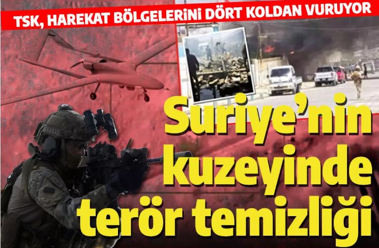Türk Silahlı Kuvvetleri'nin (TSK) Suriye'nin kuzeyine yönelik başlattığı operasyonun ardından Milli Savunma Bakanlığı'ndan (MSB) bir son dakika açıklaması geldi. Söz konusu açıklamada "Teröre ve teröriste hiçbir yerde geçit yok! Barış Pınarı, Fırat Kalkanı ve Zeytin Dalı bölgelerine taciz ateşi açan ve saldırı hazırlığında olduğu belirlenen 5 PKK/YPG'li terörist, ateş destek vasıtalarıyla etkisiz hâle getirildi." ifadeleri kullanıldı.