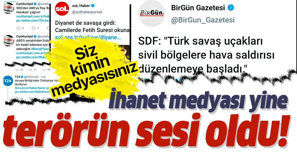 Türkiye Fırat’ın doğusunda kurulmak istenen terör koridoruna ölümcül darbeyi vuracak olan Barış Pınarı Harekatı’nı Başkan Erdoğan’ın emri ile başlattı. Operasyonun başlamasının ardından sol basın terör örgütünün sözcülüğüne soyundu. Terör örgütünün "siviller vuruluyor" yalanıyla birlikte başlayan algı oyunları BirGün Gazetesi, Sol Haber, Cumhuriyet Gazetesi ve T24 üzerinden servis edilmeye başlandı..