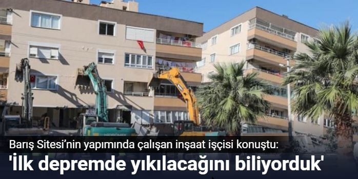 30 yıl önce mandalina bahçesi olan bu mahalle şimdi binalarla dolu. Ancak depremin ardından burası da sadece bina temellerinin kaldığı bir tarlaya dönüşecek. Erol Kaya, depremde çöken Barış Sitesi ve etrafındaki ağır hasarlı binaların yapım aşamasında çalışan inşaat işçisi. Hürriyet'ten Emre Eser'in haberine göre, 28 yıl önce Ağrı’dan İzmir’e inşaatlarda çalışmak için geldiğini söyleyen Kaya, “İlk önce şu anda çökmek üzere olan Barış Sitesi’nin yanındaki Cumhuriyet Sitesi’nde sıva ustası olarak çalıştım. Daha sonra Barış Sitesi yapılmaya başladı. Orada da arkadaşlarla birlikte çalışıyorduk. Biz inşaatında çalıştık ama o binalara hiç güvenmedik” diyor.