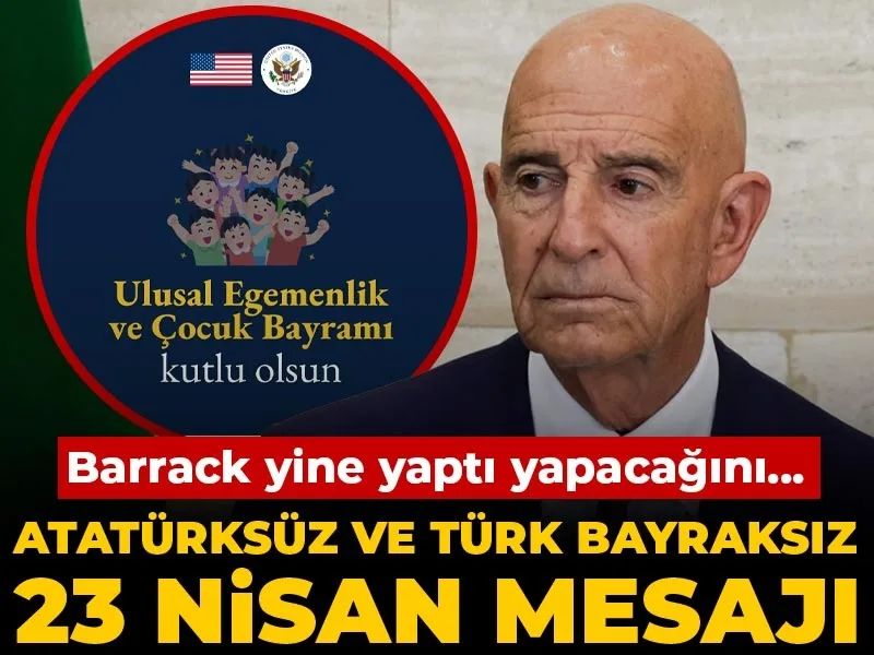 Ancak bu mesajda ne Türkiye Cumhuriyeti’nin kurucu lideri Mustafa Kemal Atatürk, ne de Türk Bayrağı yer almadı. ABD bayrağının olduğu görselde "Ulusal Egemenlik ve Çocuk Bayramı kutlu olsun." mesajı paylaşıldı.