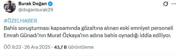 Gazeteci Burak Doğan ile Şahin Şen'in iddiasına göre Başkan Özkaya, Günaydı üzerinden bahis oynadı.
