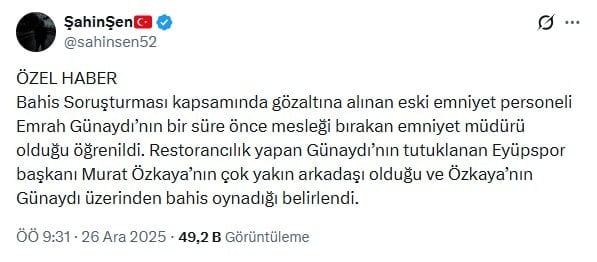Gözaltına alınan Emrah Günaydı, bir süre önce mesleği bırakan emniyet müdürüydü.
