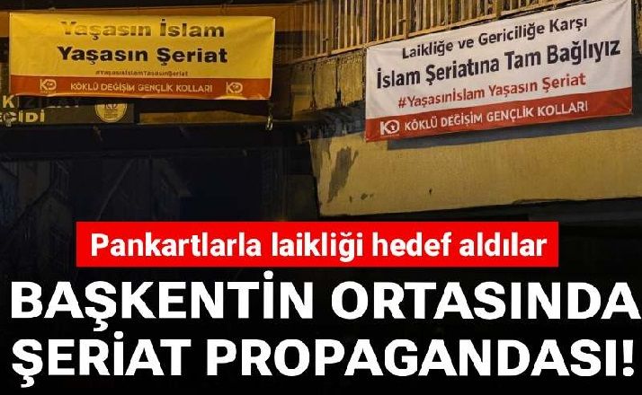 Ankara’nın pek çok noktasında, üstgeçitte laikliği hedef alan ve şeriat propagandası içeren pankartlar asıldı. Terör örgütü Hizb-ut Tahrir'in uzantısı Köklü Değişim isimli yapı tarafından asıldığı bildirilen pankartlarda, “Laikliğe karşı şeriata bağlıyız" ifadeleri yer aldı.