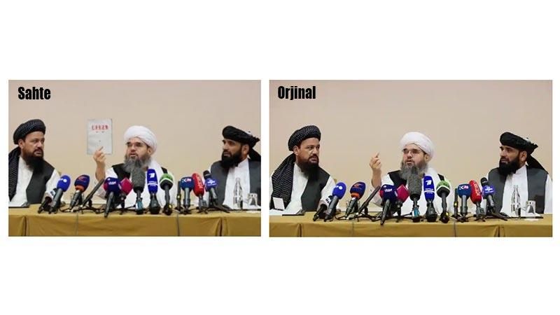 Taliban'ın Kabil'i kurtarmasıyla birlikte sosyal medyada çok sayıda “katliam”, “ırza geçme” ve “işkence” görüntüsü piyasaya sürüldü. Bu görüntülerden bazıları başka ülkelerde, bazıları çok eski tarihli, bazıları da tamamen kurgu çıktı. Son günlerde ortaya çıkan ve binlerce kez paylaşılan bir fotoğrafın ise sahte olduğu, Taliban yöneticilerinin yaptıkları açıklamayla ortaya çıktı. Fotoğrafta basın açıklaması yapan Taliban temsilcisi Shahabuddin Delawar'ın elinde bir kitap olduğu görülüyor. Fotoğrafa dikkatli bakıldığında ise kitabın modern Çin'in kurucusu Mao Zedong'a ait 'Seçme Eserler' olduğu anlaşılıyor. Fotoğrafı paylaşan hesaplar, Taliban yetkilisinin Kabil'in kurtarılmasıyla ilgili olarak Çin Devrimi'ne atıfta bulunduğunu iddia ediyor. Photoshop ile eklenen bu kitap üzerinden Batılı ülkelerde “Taliban hareketi Mao'cu” ve “Afganistan'a komünizm geldi” yorumları yapılıyor. Sosyal medyada çokça paylaşılan bu fotoğrafın aslını gösteren Taliban yetkilileri ise, açıklamanın 9 Temmuz 2021'de Rusya'da yapıldığını ve Baş Müzakereci'nin elinde herhangi bir kitap olmadığını açıkladı. Yapılan teknik incelemede de bu sahte fotoğrafın ABD, İngiltere, Kanada, Birleşik Arap Emirlikleri ve Hindistan'dan 855 sahte hesap kullanılarak yayıldığı anlaşıldı.