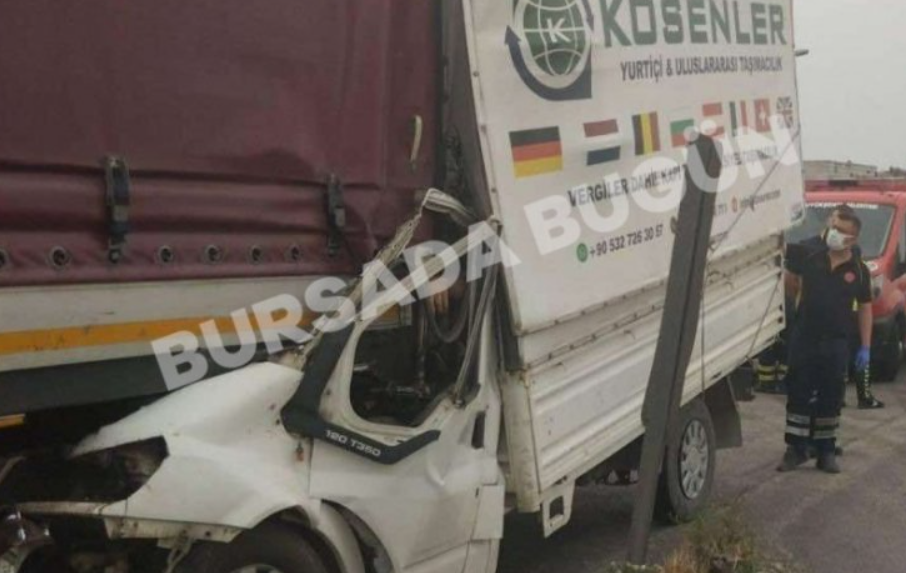 Bursa'nın Karacabey ilçesinde meydana gelen trafik kazasında, yol kenarında park halinde bulunan tıra kamyonet arkadan çarptı. Feci kazada, hurdaya dönen kamyonet içinde bulunan iki kişi olay yerinde hayatını kaybetti.