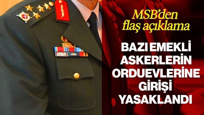 Son dönemde orduevlerine girişi yasaklanan emekli personele; Bakanlığımıza ve Türk Silahlı Kuvvetlerine eleştirileri için değil, maksatlı ve sistematik şekilde yukarıda belirtilen mevzuat kapsamına giren söz ve davranışlarda bulundukları tespit edildiği için yasal işlem tesis edilmiştir. TSK, disiplinsizliğe ve şahsi menfaatlerini kurumsal değerlerin önüne koyan yaklaşımlara hiçbir şekilde müsamaha göstermeyecektir.”