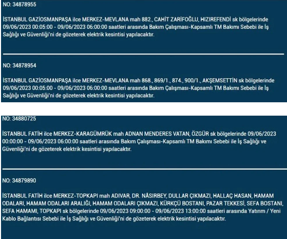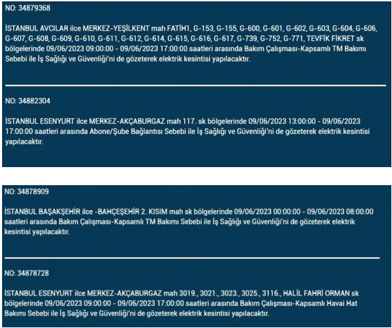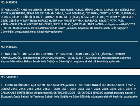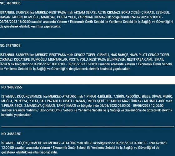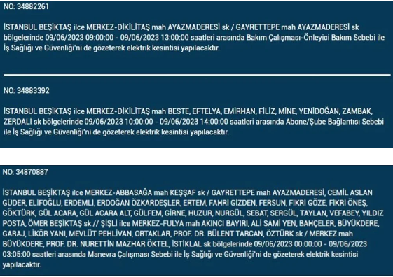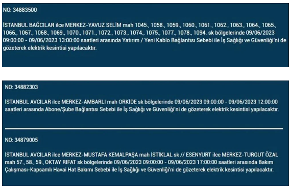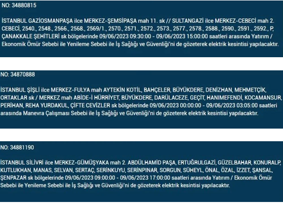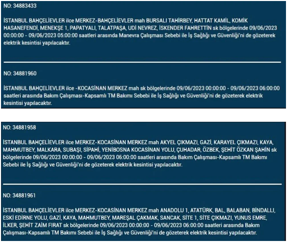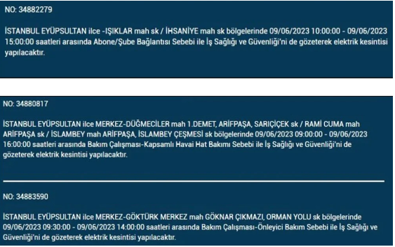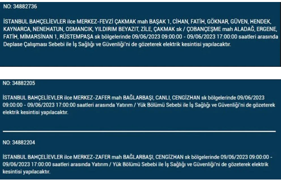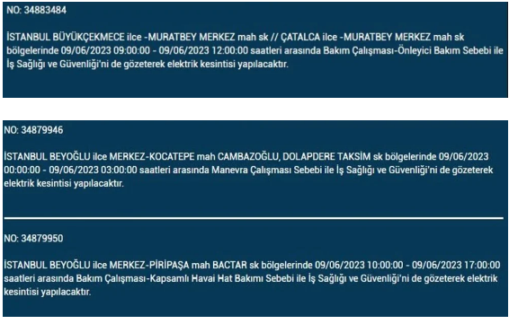 BEDAŞ, İstanbul'da planlı ve bakım çalışması kapsamında 9 Haziran 2023 Cuma günü planlı ve bakım çalışması amaçlı elektrik kesintilerinin yapılacağı ilçe ve mahalleleri açıkladı.