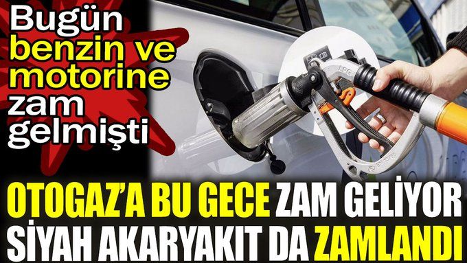 Bu sabah benzinin litre fiyatına 1 lira 34 kuruş, motorinin ise 1 lira 11 kuruş zam yapılmıştı. Kalorifer yakıtının (kalyak) litre fiyatına 1 lira 02 kuruş, fuel oile 73 kuruş ve yüksek kükürtlü fuel oile ise 1 lira 07 kuruş artış yapılmıştı. Bu gece yarısı otogaza da 48 kuruş zam geliyor.
