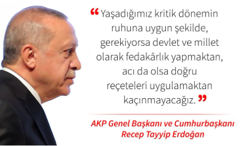 Bu gelişmeler karşısında dün ekranlara çıkan AKP Genel Başkanı ve Cumhurbaşkanı Erdoğan ekonomide doğru adımların atılacağı sinyallerini vererek ‘acı reçeteyi uygulayacağız' ifadelerini kullandı.
