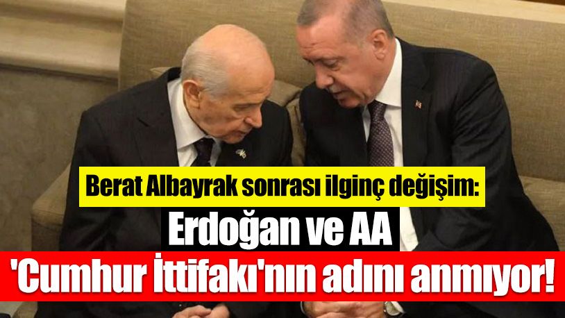 Erdoğan daha önce sık sık vurgu yaptığı Cumhur İttifakı'ndan bir kere bile bahsetmedi. Önceden planlanan Kıbrıs ziyaretinde ise Bahçeli'nin adı AA'daki haberde yok” ifadelerini kullandı.