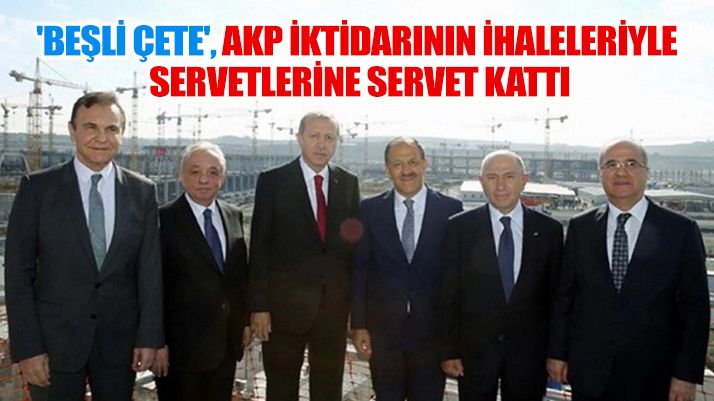 Aynı şekilde İstanbul Havalimanı projesini de bu isimler aldı. İhaleyi 22 milyar 152 milyon Avro’ya Cengiz, Mapa, Limak, Kolin, Kalyon Ortak Girişim Grubu kazandı. İnşaat sırasında Kuzey Ormanları Savunması 13 milyon ağaç kesildiğini açıkladı. Artvin Yusufeli’nde Çoruh Nehri üzerine inşa edilen Yusufeli Barajı da beşli çete için gelir kapısı oldu. Toplamda 3 milyar 400 milyon TL’lik ihaleyi de Cengiz, Limak ve Kolin aldı.