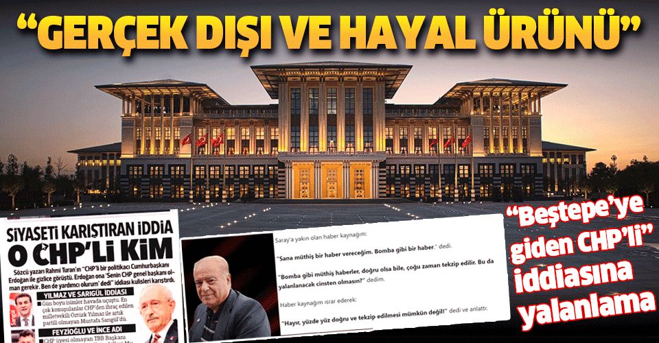 "Son günlerde bir köşe yazısında mesnetsiz bir şekilde ortaya atılan ve ne yazık ki medyamızda da yoğun tartışmalara neden olan "Sayın Cumhurbaşkanımızın, Cumhurbaşkanlığı Külliyesi'nde CHP'li bir siyasetçiyle görüştüğü ve aralarında bu kişinin CHP genel başkanı olması yönünde bir diyalog geçtiği" iddiası tamamen gerçek dışıdır, hayal ürünüdür.
