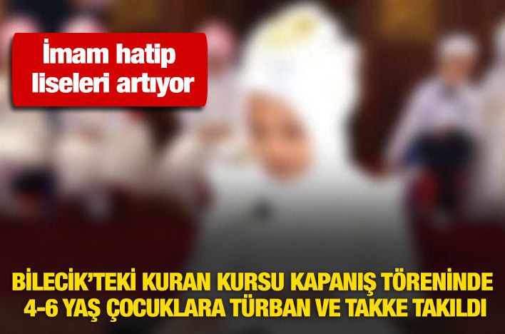 Bilecik’teki Kuran kursu kapanış töreninde 46 yaş çocuklara türban ve takke takıldı