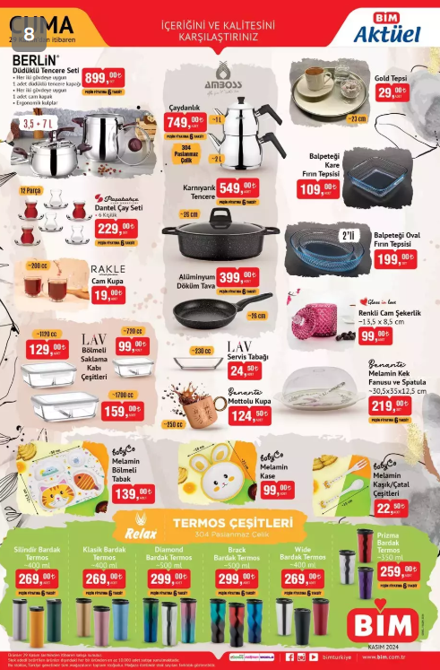Bim de bu cuma gıdada büyük indirim var.BİM 2629 Kasım aktüel katalogları yayımlandı. Salı ve Cuma günleri mağaza raflarında satışa sunulan BİM aktüel kataloglarında her hafta olduğu gibi bu hafta da farklı ürün seçenekleri yer alıyor. İşte BİM 2629 Kasım aktüel kataloğunda yer alan ürünlerin tam listesi...Diğer sayfaya geçiniz.