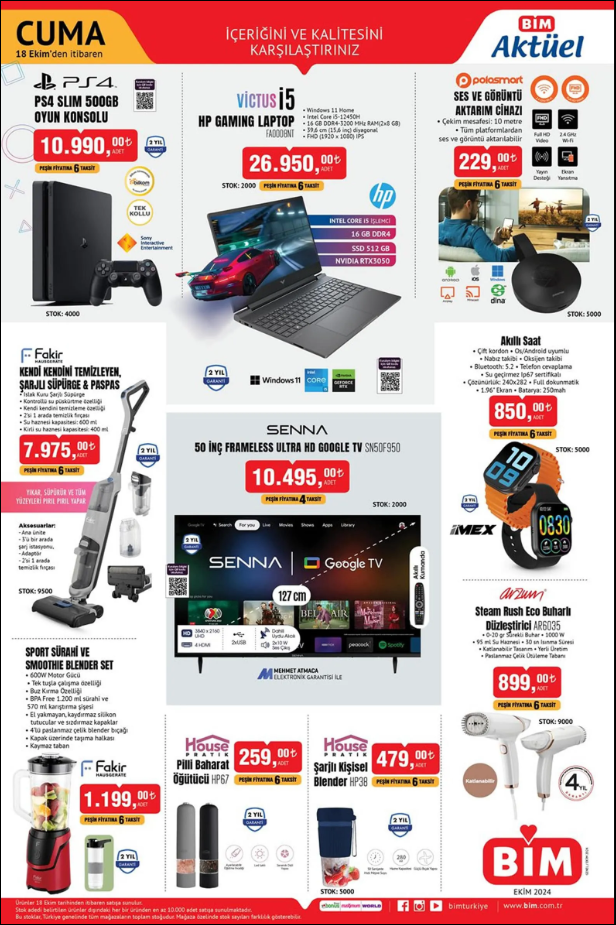 BİM’de bu hafta 15 Ekim ile 22 Ekim 2024 tarihleri arasında geçerli olacak haftanın önerileri kataloğu yayınlandı. BİM 15 Ekim 2024 Salı kataloğu ile bu hafta gelecek aktüel ürünler belli oldu. 15 Ekim Salı günü BİM’de hangi ürünler yer alacak hemen bakalım…Detayı diğer sayfamıza geçerek okuyunuz