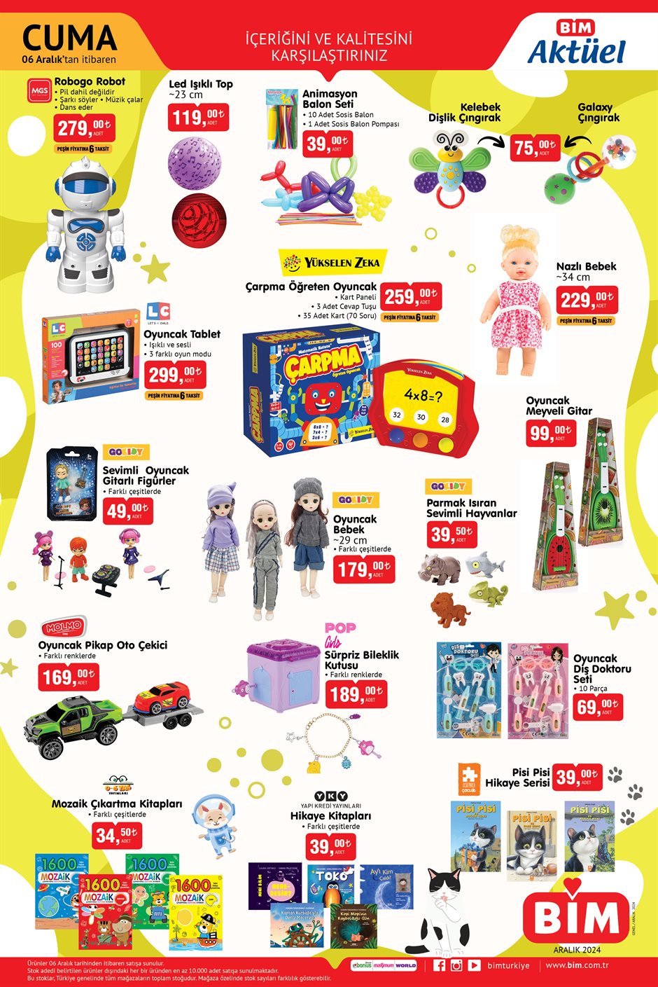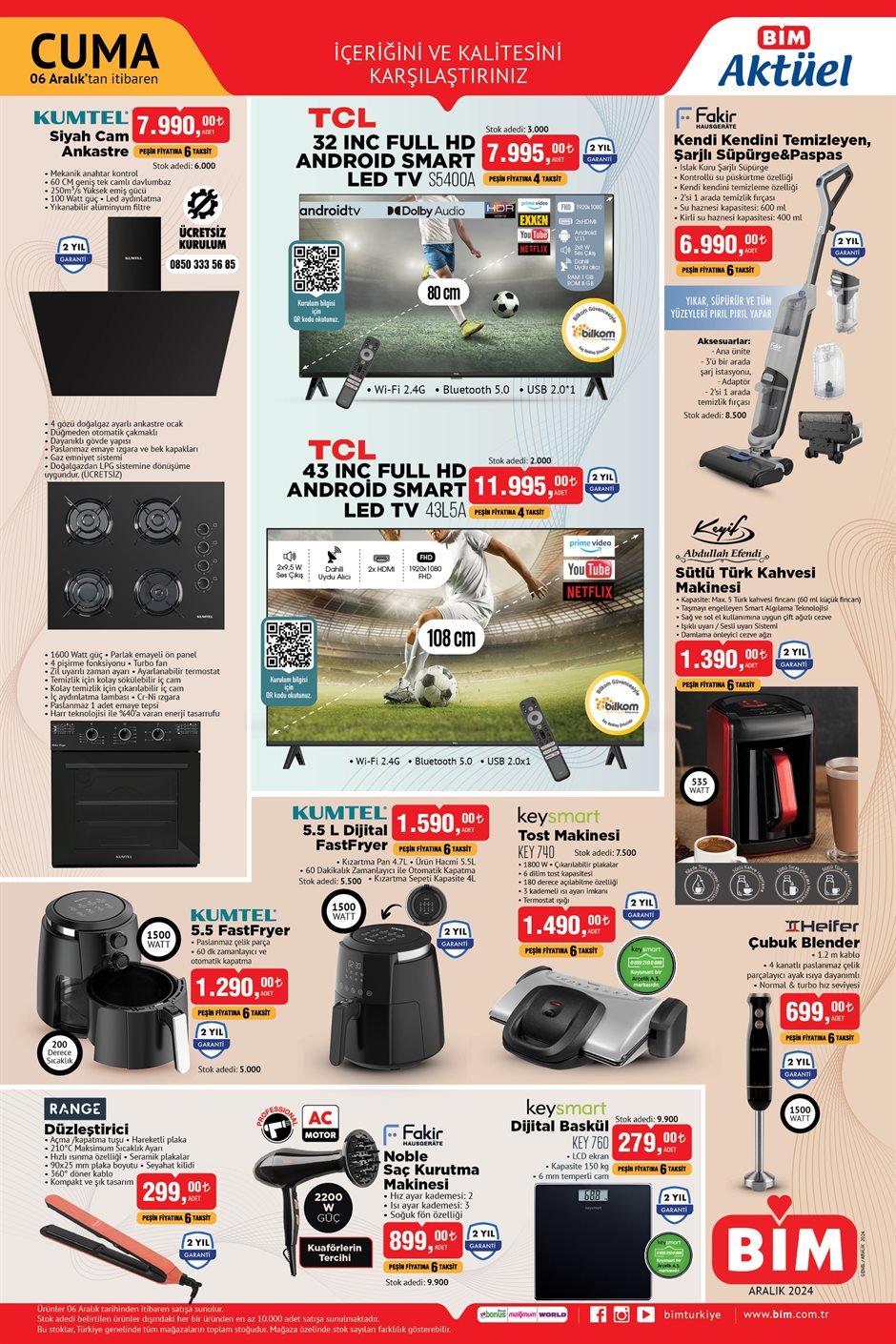 Aralık ayının ilk aktüel ürünler kampanyası yayınlandı. BİM 6 Aralık 2024 Cuma Kataloğu ile bu hafta satışa sunulacak aktüel ürünler belli oldu. 6 Aralık BİM Aktüel Ürünler kampanyasında hangi ürünler yer alacak hemen bakalım. BİM 6 Aralık 2024 aktüel ürünler kataloğu yayınlandı. BİM'de bu hafta 6 Aralık ile 13 Aralık 2024 tarihleri arasında geçerli olacak Aralık ayının ilk aktüel ürünler kampanyasında yer alacak aktüel ürünle rbelli oldu. 6 Aralık 2024 Cuma günü BİM'de hangi ürünler satışa sunulacak hemen bakalım. 6 Aralık BİM Aktüel kampanyasında ilk dikkat çeken aktüel ürün TCL 43" Full HD Android Smart Led Tv oluyor. BİM 6 Aralık 2024 kataloğunda TCL 43" Full HD Android Smart Led Tv için 11.995 TL fiyat görüyoruz. BİM 6 Aralık 2024 Kataloğu ile bu hafta satışa sunulacak diğer aktüel ürünlere de hemen bakalım.