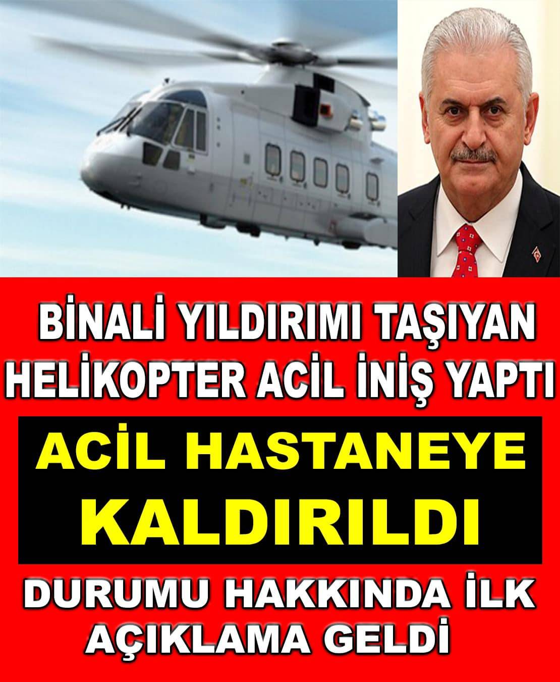Binali Yıldırım’ ı taşıyan helikopter acil iniş gerçekleştirmek mecburiyetinde kaldı… Helikopter iniş yapınca acil hastaneye kaldırıldı!! Bilecik Eğitim ve Araştırma Hastanesi’ nden Eskişehire sevk edilmek mecburiyetinde kalındı!! Tümünü oKumaK iÇİN GÖRSELE dOKUN GEÇ