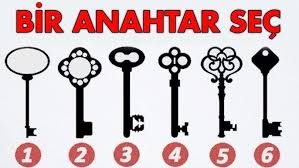 Tek yapmanız gereken aşağıdaki altı anahtardan birini seçmek ve seçtiğiniz anahtarın kişiliğiniz hakkında neler söylediğini okumak. İşte anahtar kişilik testi… DEVAMINI GÖRMEK İÇİN 1,2,3 ŞEKLİNDE RAKAMLARA TIKLAYINIZ…