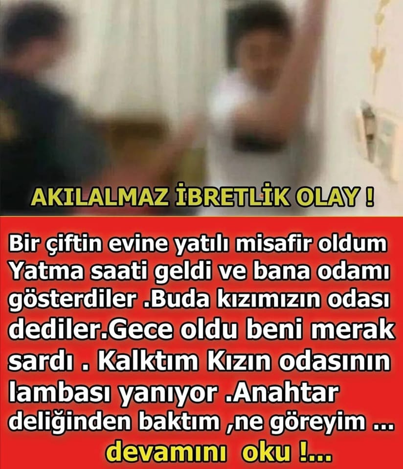 Kalktım kızının odasının lambası yanıyordu.Anahtar deliğinden baktım, ne göreyim