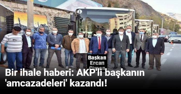 AKP'li Gümüşhane Belediyesi, otobüs alımı için bir ihale açtı. İhaleye giren tek firma Gümüşhane Belediye Başkanı Ercan Çimen'in akrabaları oldu. Söz konusu ihale tartışma yarattı.