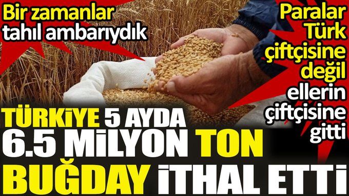 Türkiye, hububatta verimli bir yıl geçirirken, TÜİK’in ithalat verileri de acı tabloyu ortaya koyuyor. TÜİK’in dış ticaret verilerine göre Türkiye bu yılın ilk 5 ayında 6.5 milyon ton ekmeklik buğday ithal etti. İthalat 4 milyon 440 bin tonu Rusya’dan, 1 milyon 802 bin tonu da Ukrayna’dan yapıldı.