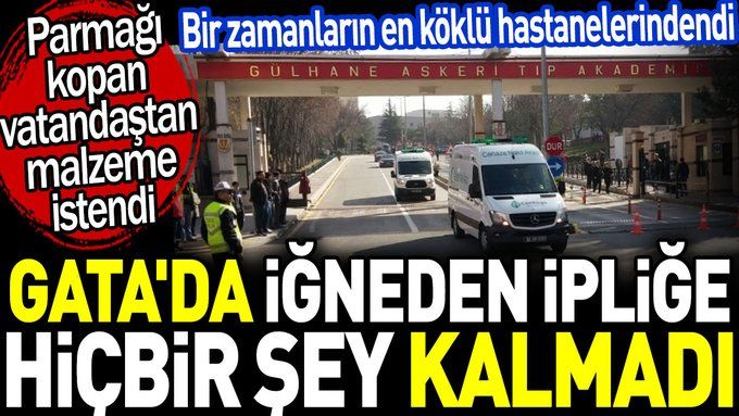 Cumhuriyet'ten Merve Kılıç'ın haberinde yer alan bilgilere göre, bir vatandaş iş kazası yaşadı ve parmağı koptu. Ankara’nın en köklü hastanelerinden biri olan Gülhane Eğitim ve Araştırma Hastanesi’ne (GATA) başvurdu ancak hastane yetkilileri, “parmağı dikecek malzeme olmadığı” gerekçesiyle hastayı ameliyata alamadı.