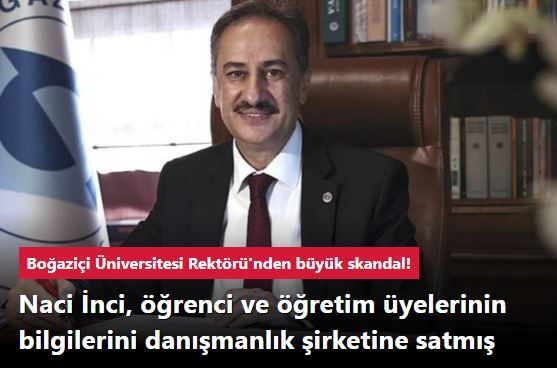 Cumhuriyet'teki köşesini Boğaziçi'ne ayıran gazeteci Barış Pehlivan, Naci İnci'nin öğrenci ve öğretim üyeleri dahil yaklaşık 60 bin kişinin kişisel bilgilerini bir danışmanlık şirketine sattığını gündeme taşıdı.