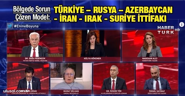 ''Bunun yanında meseleye, geçmişteki başarılarımız üzerinden bakmak da çözümü gösteriyor. ABD ve İsrail, 2017 sonbaharında Irak'ın kuzeyinde sözde Kürdistan'ı, 2. İsrail devletini ilan etmeye kalktı. Türkiye İran, Irak, Suriye, Rusya birleşti ve bu planı bozguna uğrattı. Aslında bölgesel bir model oluştu. ABD ve İsrail'e karşı bir model. Strateji böyle kurulur. Bu model, Karabağ'da da zaferi getirdi. Azerbaycan; Türkiye, Rusya ve hatta İran'ın da dolaylı desteğiyle vatan topraklarını kurtardı. Bölgede kalıcı barış ve dostluğun anahtarı burada. Bu nedenle, Cumhurbaşkanı Erdoğan; Türkiye, Rusya, İran, Azerbaycan, Gürcistan ve kabul ederse Ermenistan'dan oluşacak bir ''Altılı Platform'' önerdi. 'Türkiye dostlarını azaltıp, düşmanlarını artırıyor’ deniyor. Düşmanlarımız çoğaltılarak İsrail projesi engellenebilir miydi? Azerbaycan toprakları kurtarılabilir miydi?''