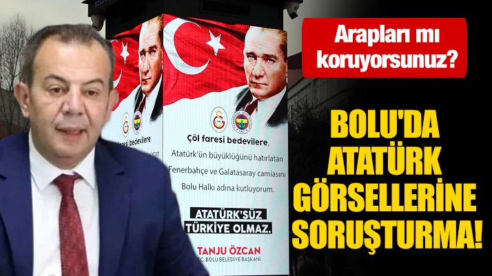 Bolu Cumhuriyet Başsavcılığı, Riyad'da oynanması planlanan Süper Kupa Finali'nin iptali sonrası Bolu Belediye Başkanı Tanju Özcan tarafından kentin billboardlarına yansıtılan "Çöl faresi bedevilere, Atatürk'ün büyüklüğünü hatırlatan Fenerbahçe ve Galatasaray camiasını Bolu halkı adına kutluyorum. Atatürk'süz Türkiye olmaz" görseli ile ilgili soruşturma başlattı.