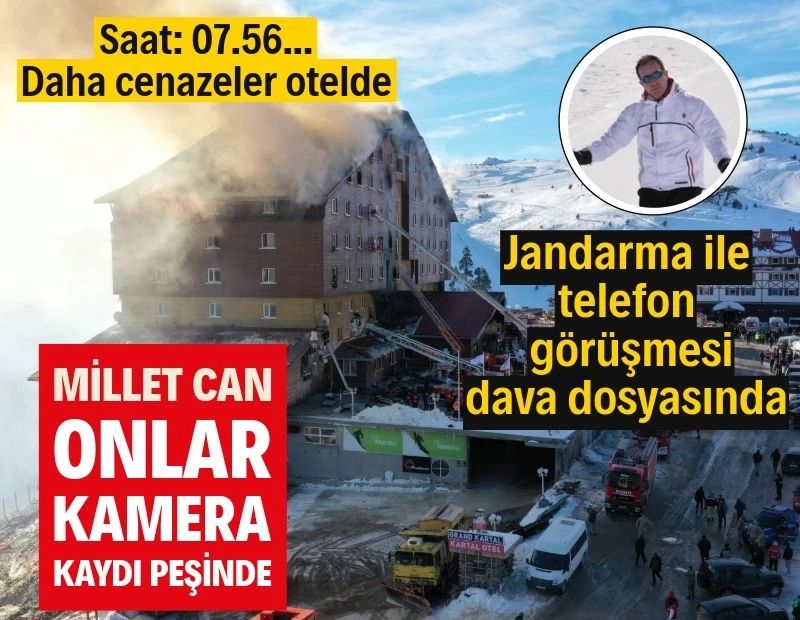 Bolu Kartalkaya'daki yangının sabahında Grand Kartal Otel Müdürü Zeki Yılmaz’ın bir jandarma personeliyle, tutuklu sanıklardan otelin Yönetim Kurulu üyesi Emir Aras'ın çalışma odasında bulunan kamera kayıtlarına ilişkin görüşmesi mahkeme dosyasına girdi.