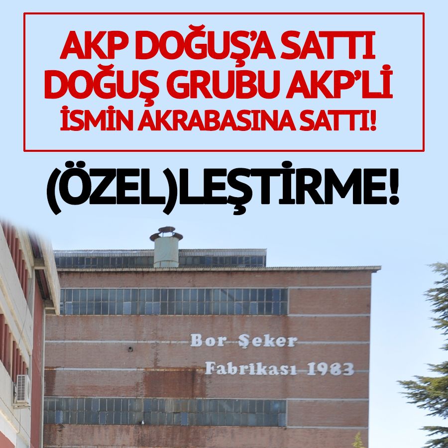 Doğuş Yiyecek Grubu'na 336 milyon liraya satılan Bor Şeker Fabrikası'nın bir kez daha el değiştirerek, kamuoyunun yakından tanıdığı Dişli Ailesi'ne geçtiği ortaya çıktı. Fabrikanın yeni sahipleri, DSL İnşaat Sanayi ve Ticaret Şirketi oldu. Bu şirket bir süre önce Hollanda'ya büyükelçi olarak atanan, AKP'li Şaban Dişli'nin amcasının oğlu Davut Dişli'nin çocukları Emir Haktan Dişli, Eren Ali Dişli ve Sadık Enes Dişli'ye ait bulunuyor. CHP Genel Başkan Yardımcısı Orhan Sarıbal, Ankara'da yaptığı açıklamada, özelleştirme kapsamında satılan bazı şeker fabrikalarının devir işlemlerinin henüz tamamlanamadığını açıkladı.