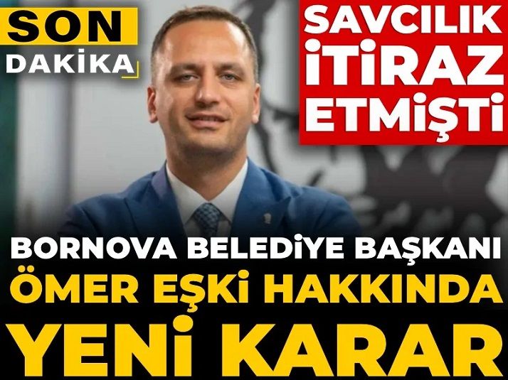 İzmir Cumhuriyet Başsavcılığı tarafından, Bornova Belediyesine yönelik yürütülen soruşturma kapsamında 3 kişiyle birlikte gözaltına alınan Bornova Belediye Başkanı Ömer Eşki, dün tutuklama talebiyle sevk edildiği nöbetçi Sulh Ceza Hakimliği tarafından serbest bırakılmıştı.