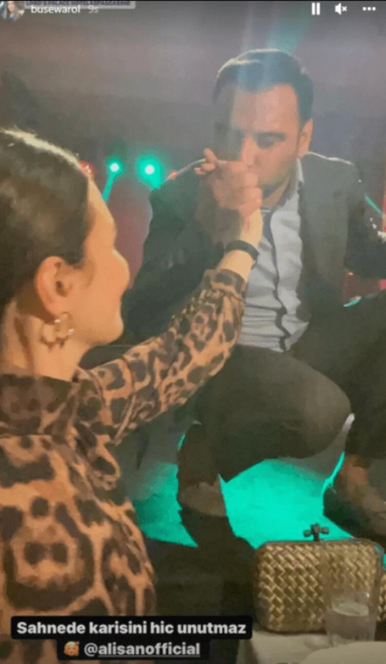 Eşini sahne aldığı mekanda dinlemeye giden Varol, Alişan'ın eğilerek elini öptüğü anı "Sahnede karısını hiç unutmaz" notu ve kalpli emojiyle paylaştı.