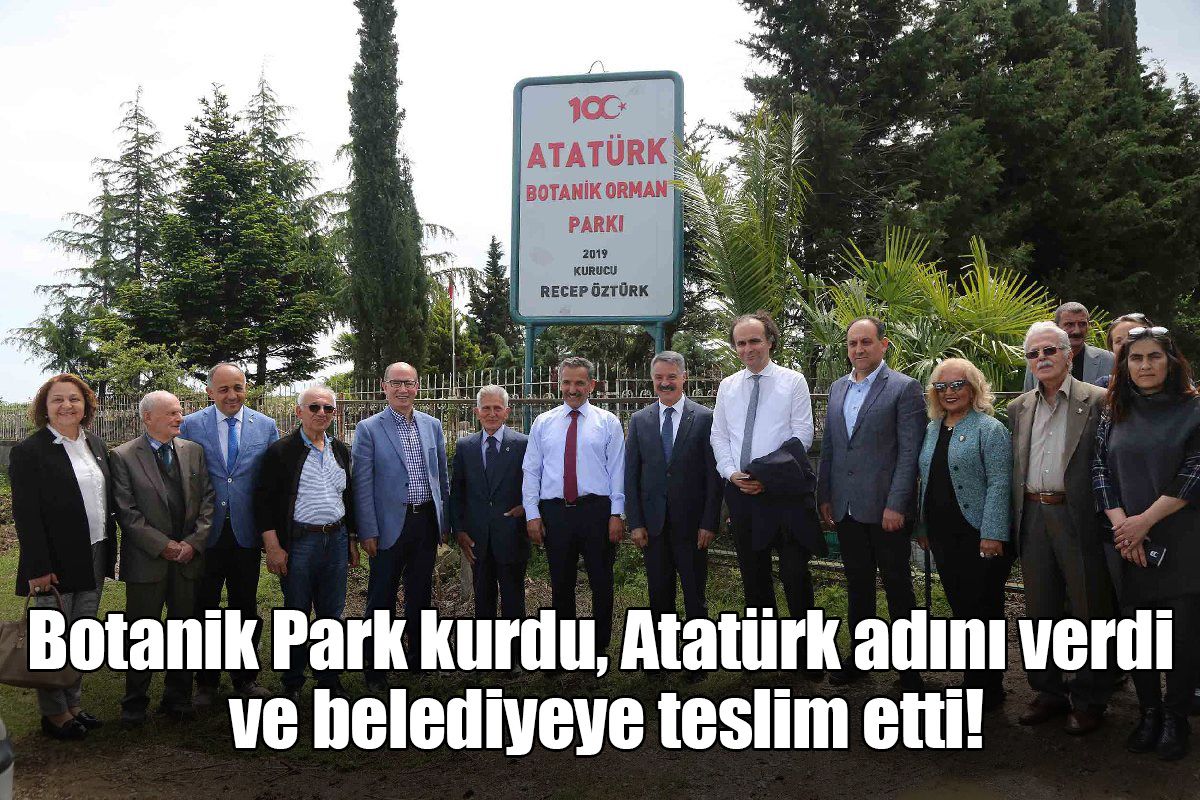 Emekli öğretmen Recep Öztürk arazisine kurduğu “100. Yıl Atatürk Botanik Orman Parkı” belediyeye teslim etti.