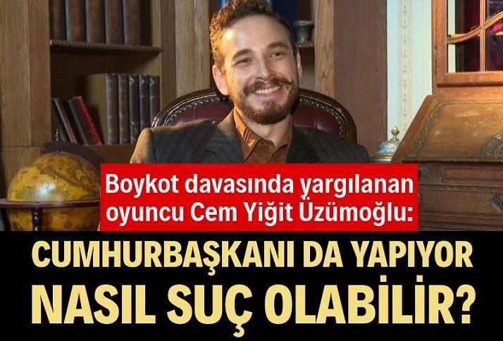 Duruşmada savunma yapan oyuncu Cem Yiğit Üzümoğlu, “Yaşanan ihlallerde ben de tanık ve mağdur oldum. Paylaşımlarımın da suç olduğunu düşünmüyorum. Cumhurbaşkanının da aynı şekilde boykot çağrıları bulunuyor. O zaman bu nasıl suç olabilir?” ifadelerini kullandı.