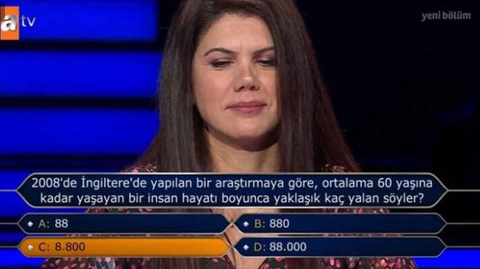 Kendisine sadık bir izleyici kitlesi edinen ve yayınlandığı akşamlarda yüksek reyting olan bu yarışmada sunucular değişse de yarışmacıların büyük ödül olan 1 milyon TL’ye ulaşmak için sürdürdüğü mücadele değişmedi. Fakat bazı durumlarda yarışmacılar sorulara öyle tufah cevaplar veriyor ki bu gündem oluyor. Bunlardan birisi de yarışmacının cahilliği oldu.
