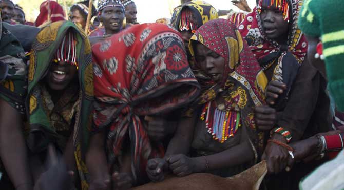 Geleneklere göre yapılan düğün merasiminde kadınlığın başlangıcı olarak gelin inek kesilmeden önce yumruklanması ve bütün Pokot kabilesinin üyelerinin orada hazır bulunması gerekiyor.