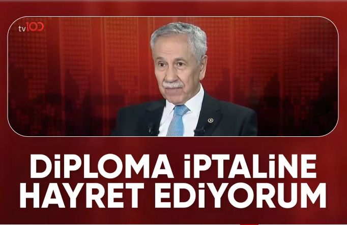 TV100'de Talat Atilla'nın sunduğu Pazar Siyaseti programına katılan 22. Dönem TBMM Başkanı Bülent Arınç, İBB Başkanı ve CHP'nin cumhurbaşkanı adayı Ekrem İmamoğlu'nun diplomasının iptal edilmesi konusunu "yanlış" olarak değerlendirdi.