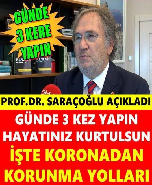 Günde 3 kere yapın hayatınız kurtulsun. Prof. Dr. Saraçoğlu koronadan korunmanın formülünü açıkladı. DHA’nın haberine göre, Cumhurbașkanı Bașdanıșmanı Prof. Dr. İbrahim Saraçoğlu, Covid19 salgınına karșı alınması gereken koruyucu önlemleri anlattı.