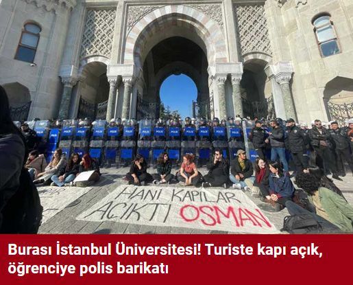İstanbul Üniversitesi Rekötlüğü’nün ziyaretçi kararına tepkiler çığ gibi büyüyor. Üniversitenin farklı fakülte ve kampüsünden bir araya gelen öğrenciler ile Beyazıt Kampüsü’ündeki öğrencilerin buluşmasını önlemek için polisler, kampüs girişine kalkanlarıyla barikat kurdu.