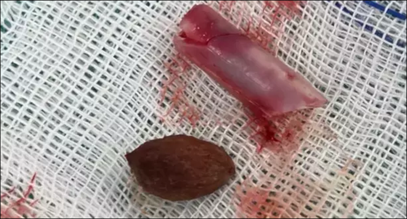 Ameliyata alınan Altunbay'ın burnundan zeytin çekirdeği ile plastik pipet parçası çıkarıldı.