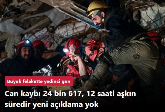 00.00 Cumhurbaşkanı Yardımcısı Fuat Oktay , depremlerde 24 bin 617 kişinin hayatını kaybettiğini bildirdi.