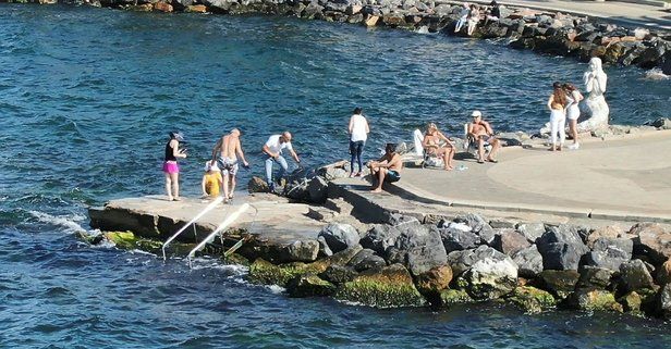 Yaz aylarında ziyaretçi yoğunluğunun yaşandığı Büyükada'da denize girebilmek için birkaç plaj bulunuyor. Bu plajlarda denize girmek isteyen vatandaşlar kişi başı 50 TL ile 70 TL arasında para ödüyor. Plajların ücretli olmasına tepki gösteren Büyükada sakinleri ise sahilde bulunan kayalıkların olduğu alanda denize giriyor. Bazı ziyaretçiler de plaj ücreti ödememek için bu alanda denize girip kaldırımlarda güneşleniyor. Adada yaşayıp her gün denize girdiğini belirten vatandaşlar plaj fiyatlarının yüksek olmasından yakınırken, ücretsiz bir halk plajı yapılmasını ve sahildeki alanın ücretsiz denize girmek isteyenler için düzenlenmesini talep ediyor. "ADADA BU İMKANI SAĞLAMAMALARI BENCE ÇOK VAHİM" "KAYALIKLARDAN DENİZE GİRİYORUZ" "PARASI OLAN VAR OLMAYAN VAR"
