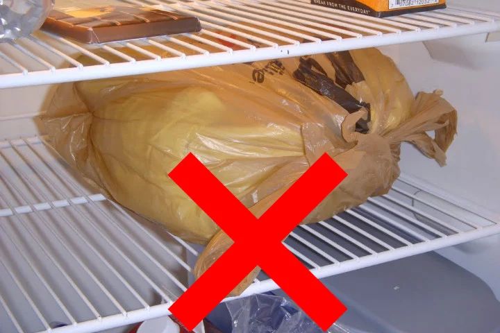 Ekmek kırıntısı Ekmek kırıntıları dondurulursa yumuşar ve hamur gibi olur. Erimiş yiyecekler Erime sırasında düşük derecede ölmemiş mikroplar gelişecektir. Eridikten sonra tekrardan dondurmak, ilk dondurma işlemine göre yiyeceğin bakteri seviyesi daha fazla olacaktır.