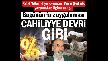 Faizi 'hibe' diye savunan Yeni Şafak yazarından ilginç çıkış: "Bugünün faiz uygulaması cahiliyye devri gibi"