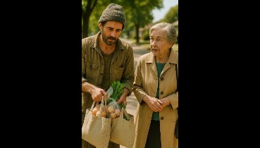 Evsiz bir adam bir emeklinin çantalarını taşımasına yardım etti