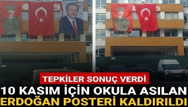 Tepkiler sonuç verdi: 10 Kasım için okula asılan Erdoğan posteri kaldırıldı