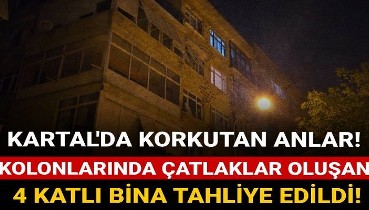 Kartal'da korkutan anlar! Kolonlarında çatlaklar oluşan 4 katlı bina tahliye edildi